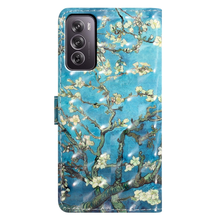 Funda de Cuero con Patrón 3D para Teléfono Oppo Reno12 Pro Global (Flor de Albaricoque con Base Azul)