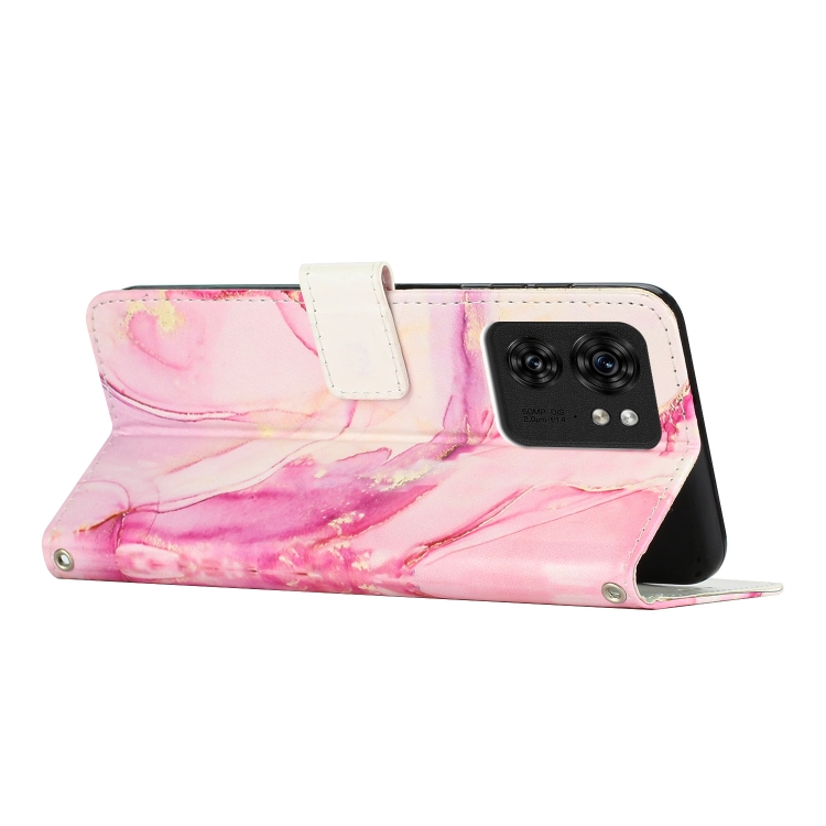 Funda de Cuero con Patrón Mármol para Motorola Edge 40/Edge 2023 (Oro Rosa)