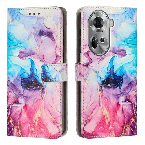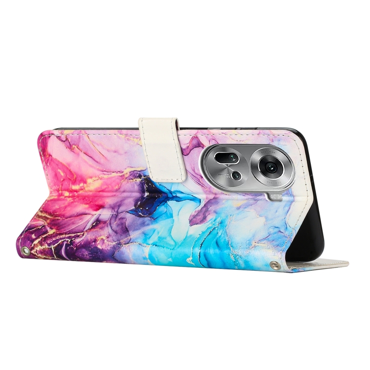 Funda de Cuero con Patrón de Mármol Pintado para Teléfono Oppo Reno11 5G Global (Rosa y Morado)