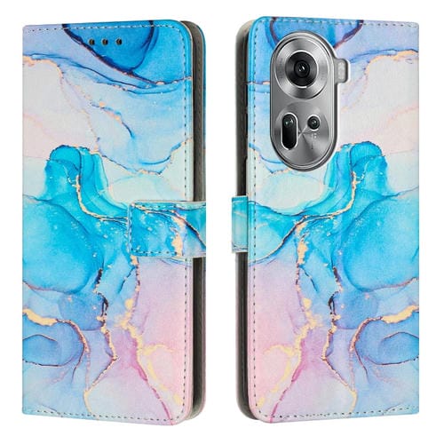 Funda de Cuero con Patrón de Mármol Pintado para Teléfono Oppo Reno11 5G Global (Rosa y Verde)