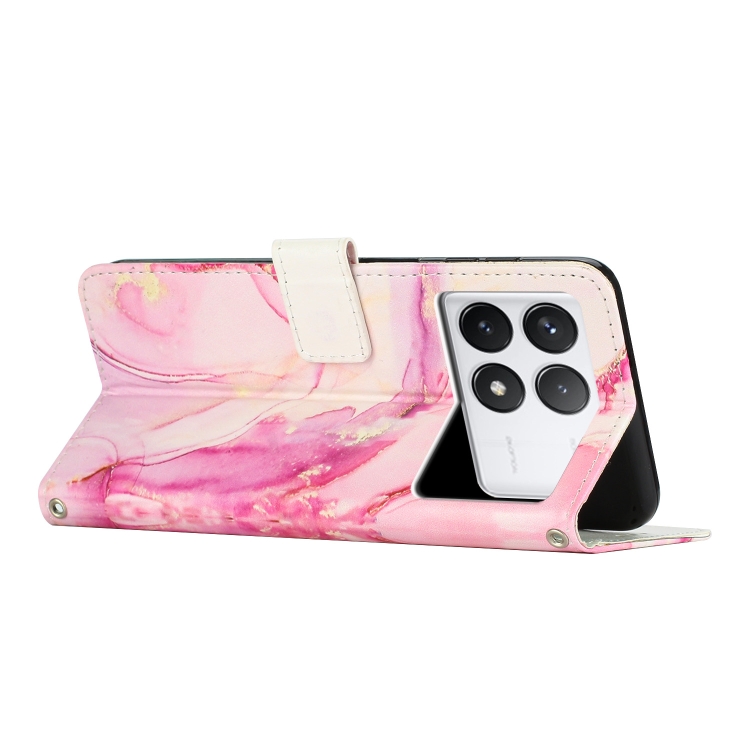 Funda de Cuero con Patrón de Mármol Pintado para Xiaomi Poco F6 Pro 5G (Oro Rosa)