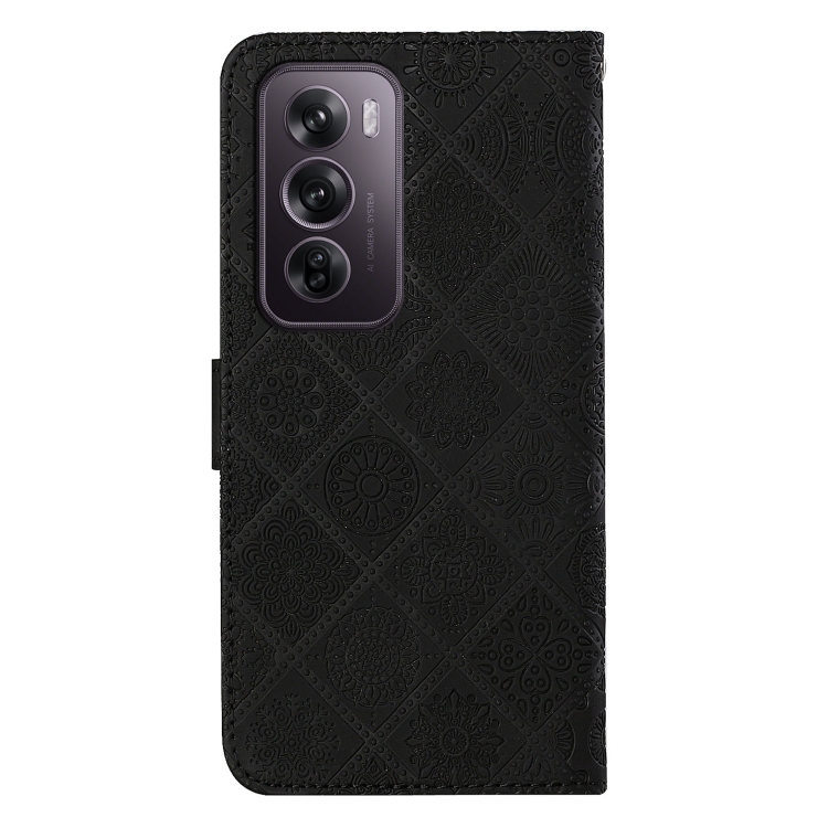 Funda de Cuero con Patrón En Relieve de Estilo Étnico Global para Oppo Reno12 Pro (Negro)