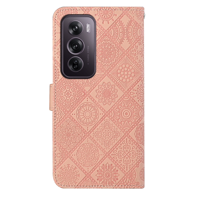 Funda de Cuero con Patrón En Relieve de Estilo Étnico Global para Oppo Reno12 Pro (Rosa)