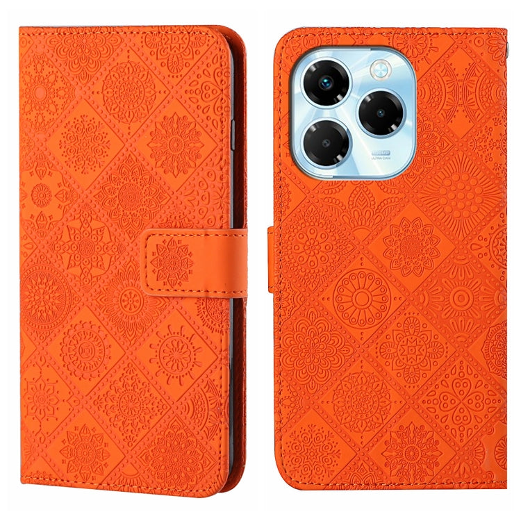 Funda de Cuero con Patrón en Relieve Étnico para Infinix Note 40X 5G (Naranja)