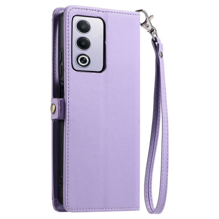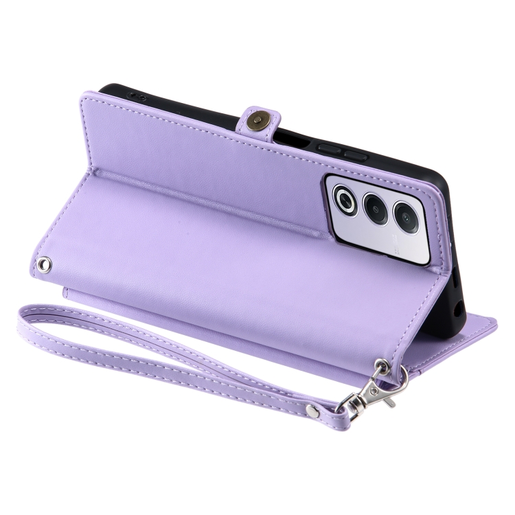 Funda de Cuero con Ranura para Múltiples Tarjetas y Billetera Global para Oppo A3 Pro 5G con Cordón (Morado)