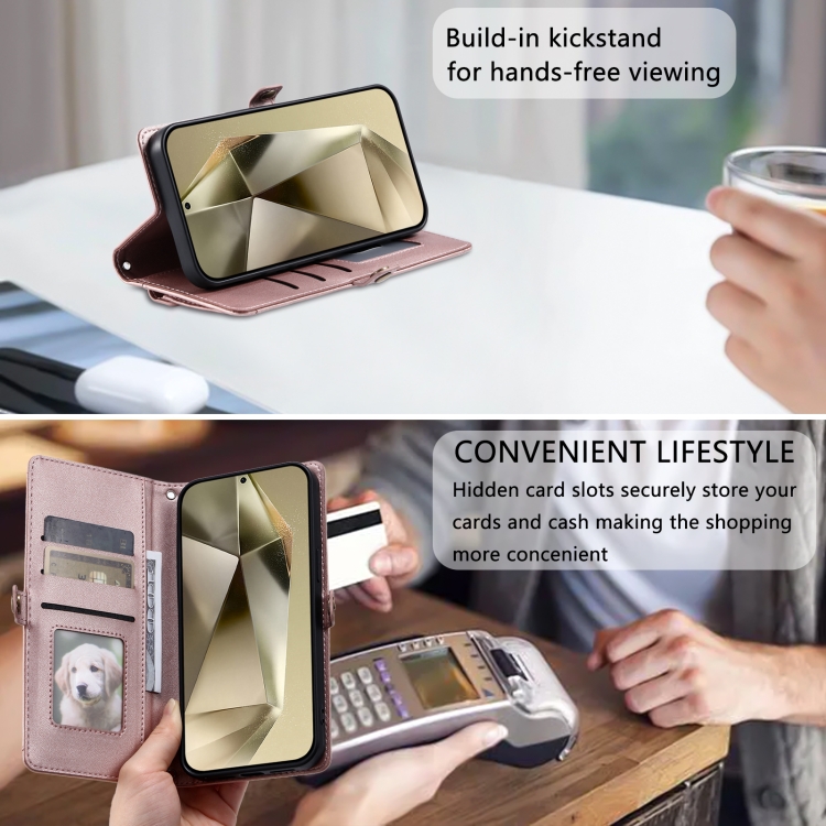 Funda Cuero Samsung Galaxy A25 5G Ranura Múltiples Tarjetas Billetera (Oro Rosa)