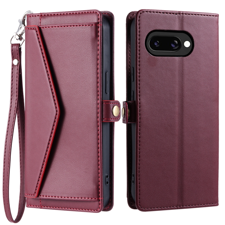 Funda de Cuero para Google Pixel 9A con Ranura para Tarjetas y Cordón (Rojo Vino)