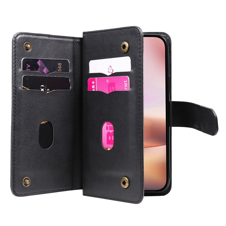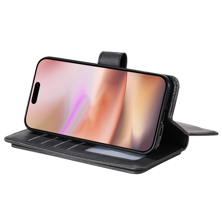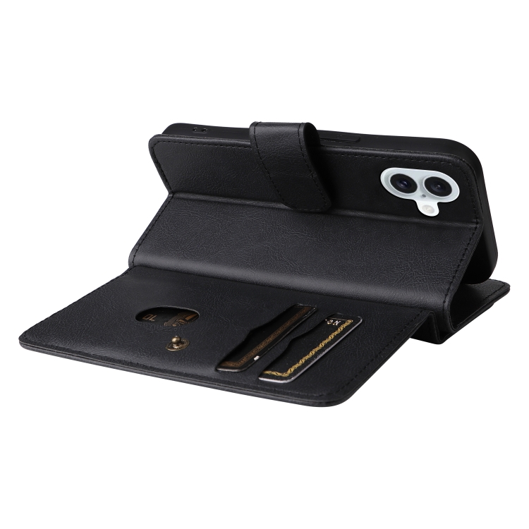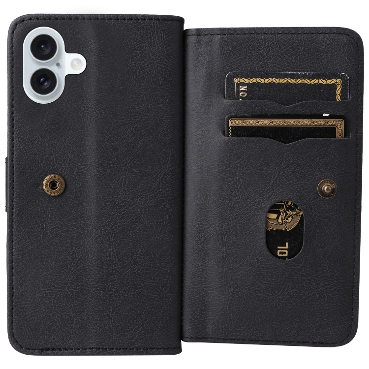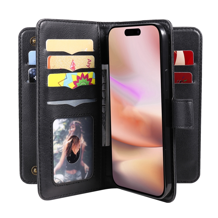 Funda de Cuero para iPhone 16 Plus con Ranuras para Tarjetas y Billetera (Negro)
