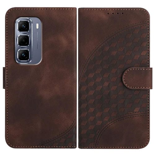 Funda de Cuero con Relieve Cabeza de Elefante para Infinix Hot 50 Pro+ 4G con Cordón (Café)
