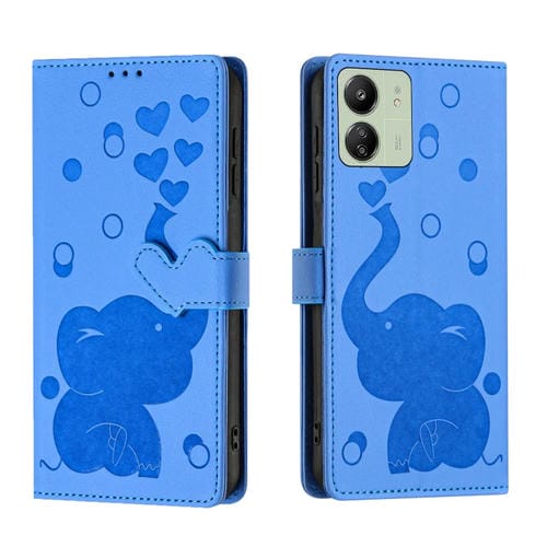 Funda de Cuero con Relieve de Elefante de Dibujos Animados para Redmi 13C 4G (Azul)