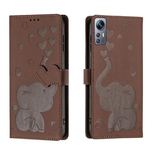 Funda de Cuero con Relieve de Elefante de Dibujos Animados para Redmi Note 12S 4G (Marrón)