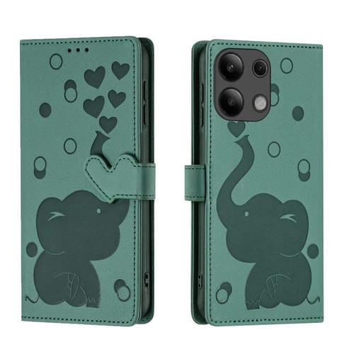Funda de Cuero con Relieve de Elefante de Dibujos Animados para Redmi Note 13 Pro 4G (Verde)