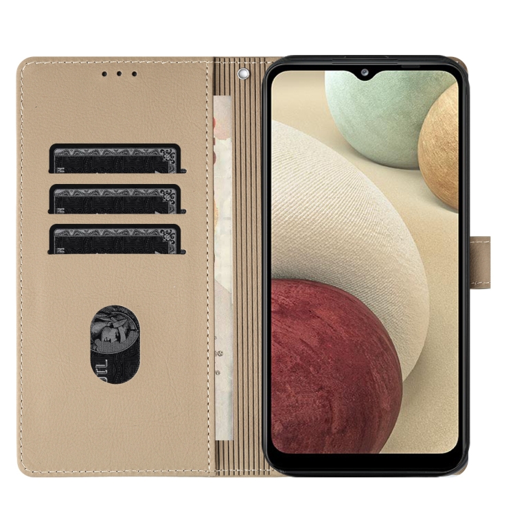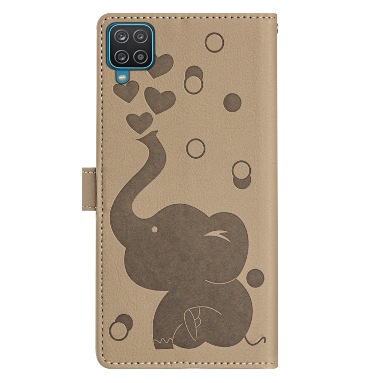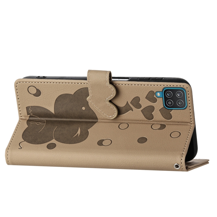 Funda Cuero Samsung Galaxy A12 5G Relieve Elefante Dibujos Animados (Caqui)