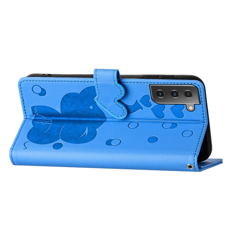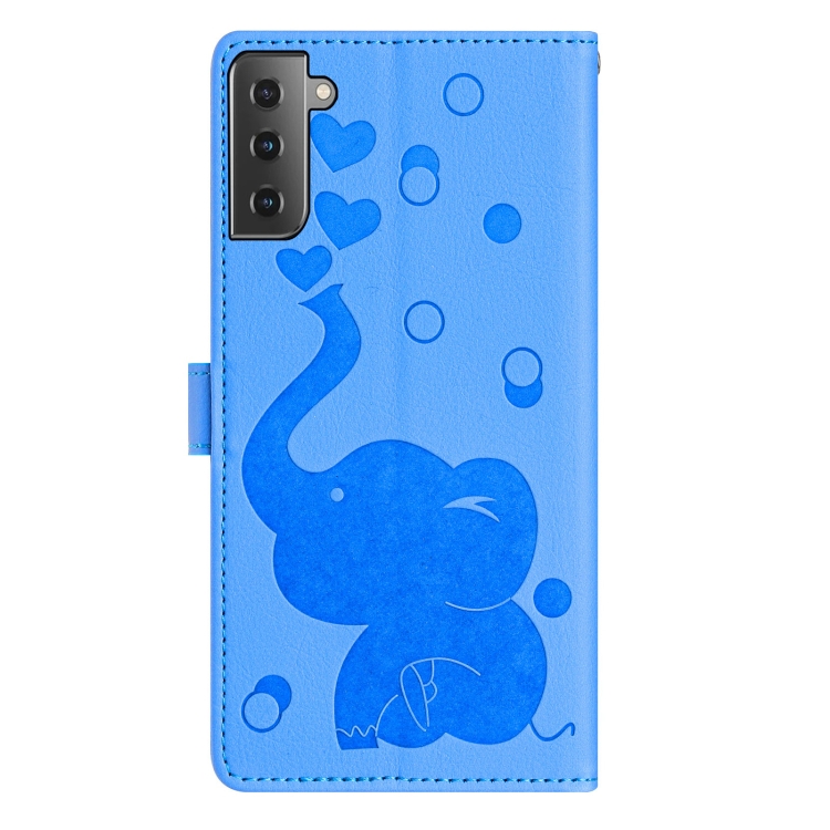 Funda Cuero Samsung Galaxy S21 5G Relieve Elefante Dibujos Animados (Azul)
