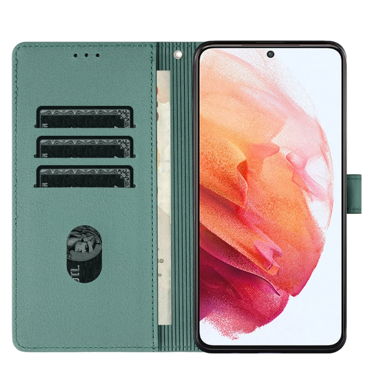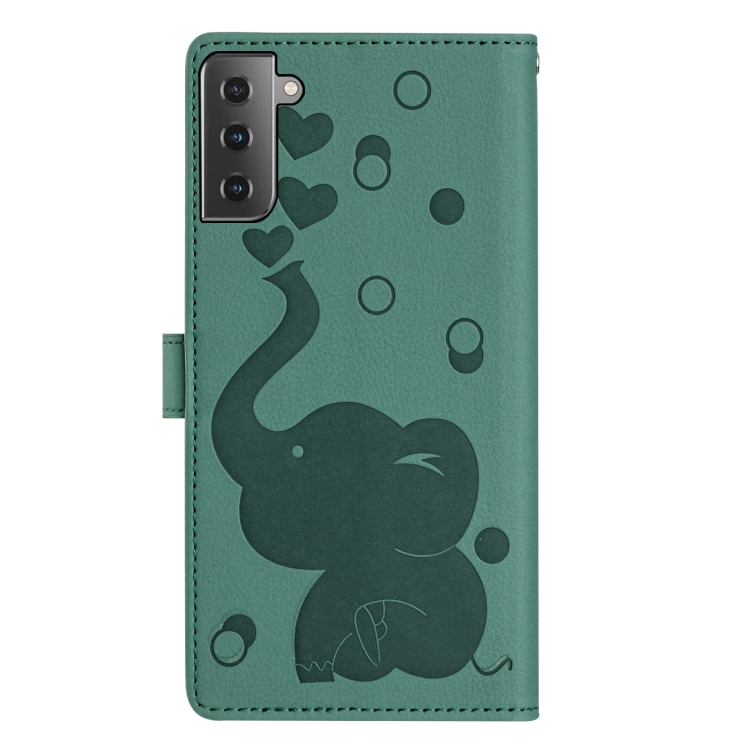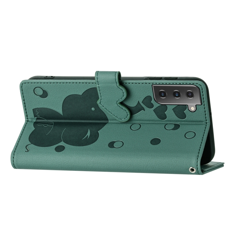 Funda Cuero Samsung Galaxy S21 FE 5G Relieve Elefante Dibujos Animados (Verde)
