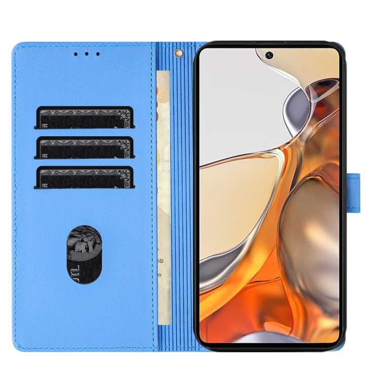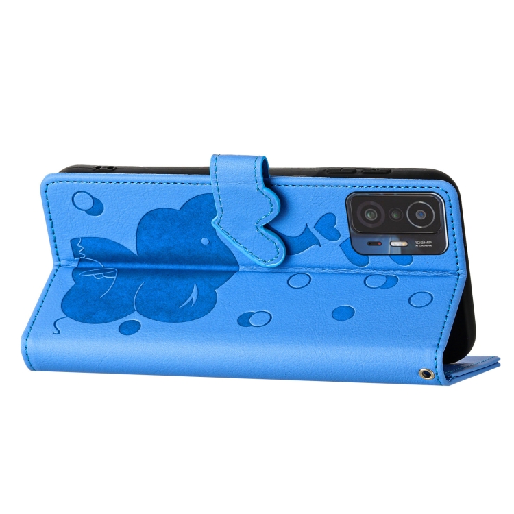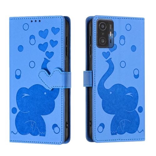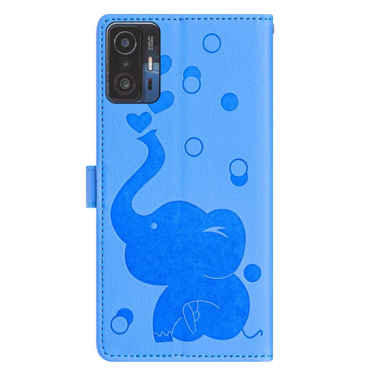 Funda de Cuero con Relieve de Elefante de Dibujos Animados para Xiaomi 11T/11T Pro (Azul)