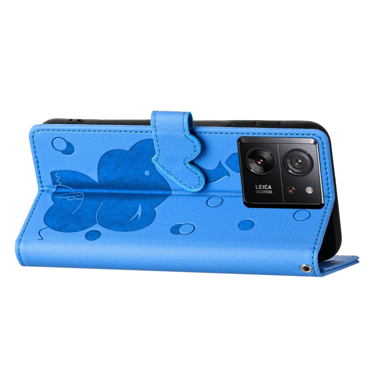 Funda de Cuero con Relieve de Elefante de Dibujos Animados para Xiaomi 13T/13T Pro (Azul)