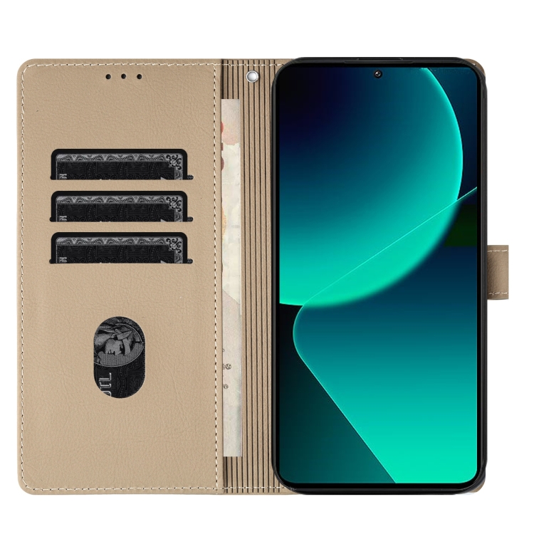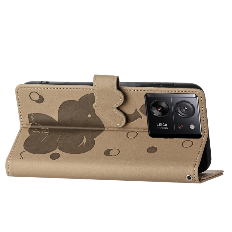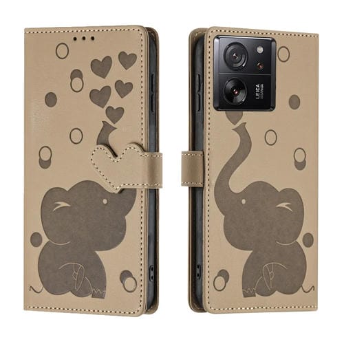 Funda de Cuero con Relieve de Elefante de Dibujos Animados para Xiaomi 13T/13T Pro (Caqui)