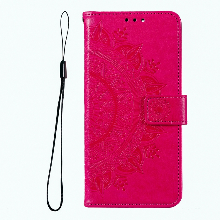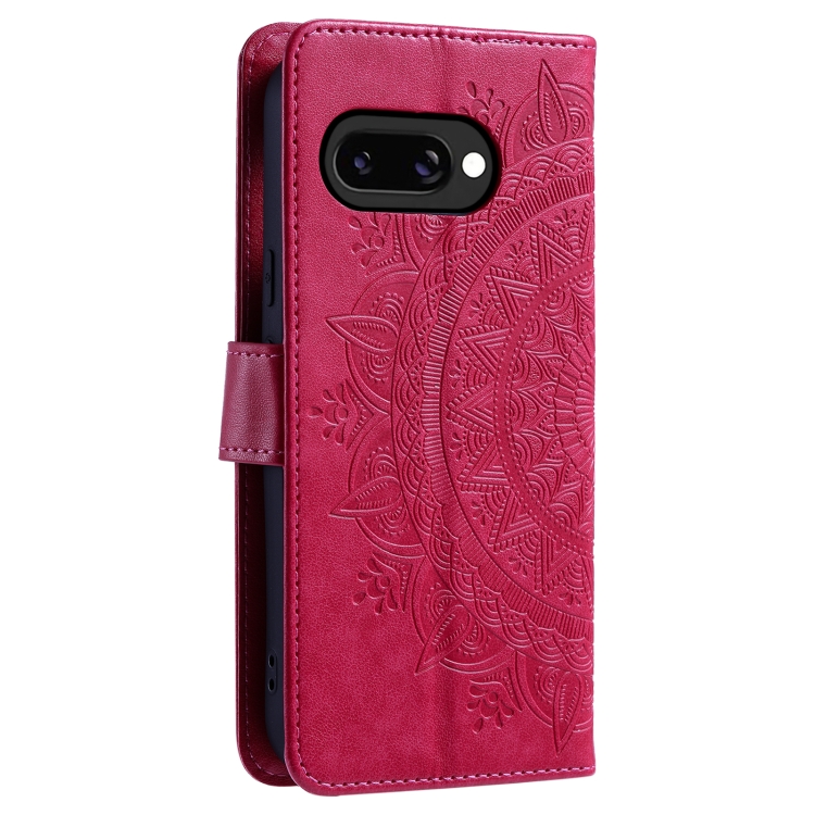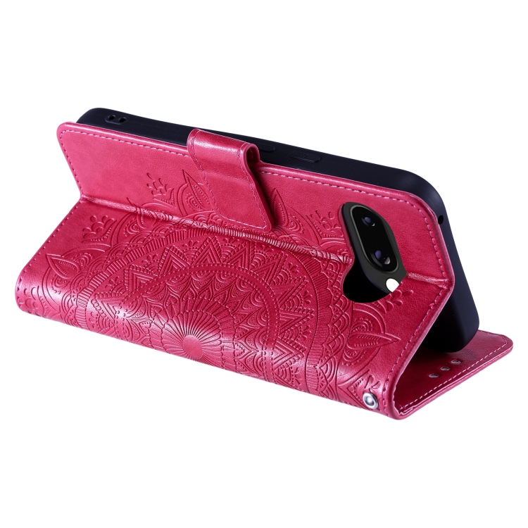 Funda de Cuero con Estampado de Flor Tótem y Cordón para Google Pixel 9A (Roja)