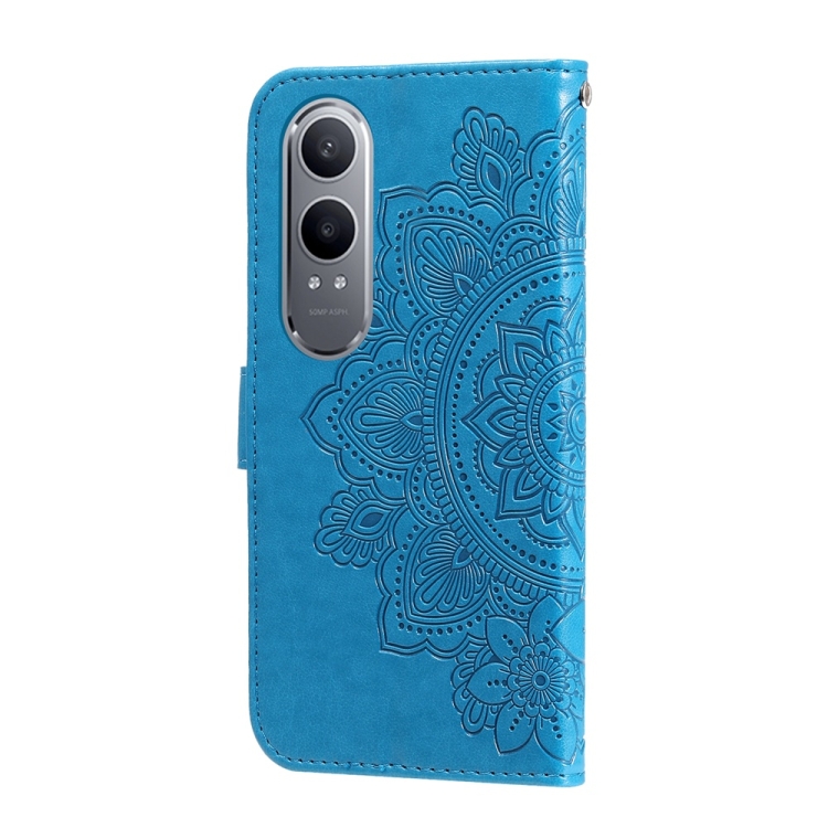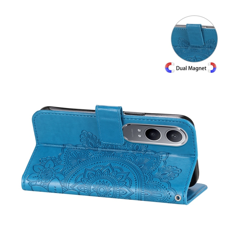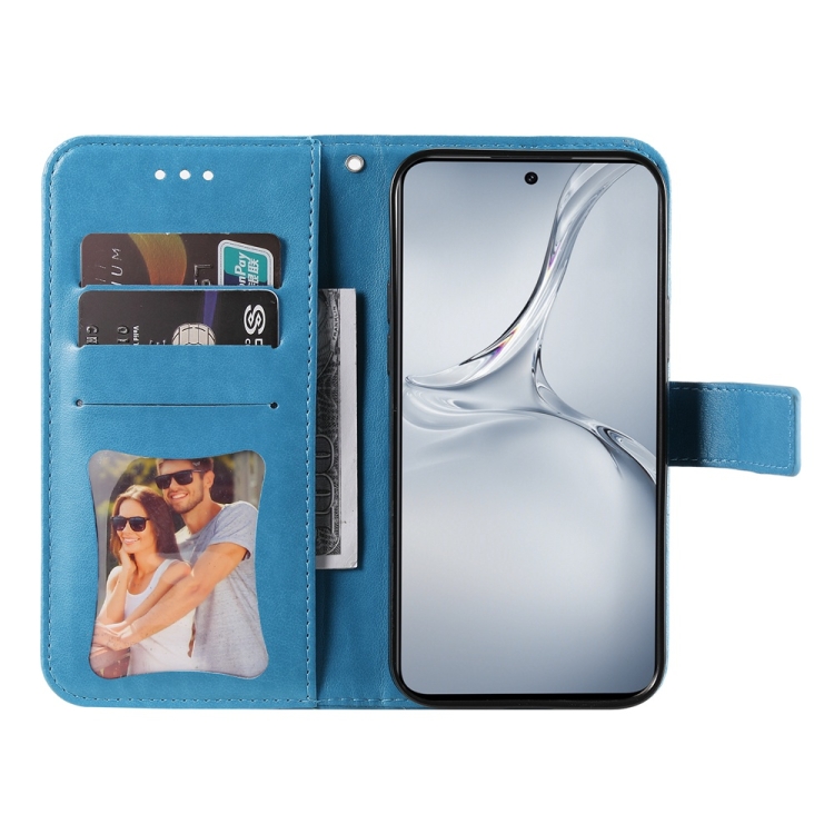 Funda de Cuero con Relieve de Flores de 7 Pétalos para Oppo K12X (Azul)