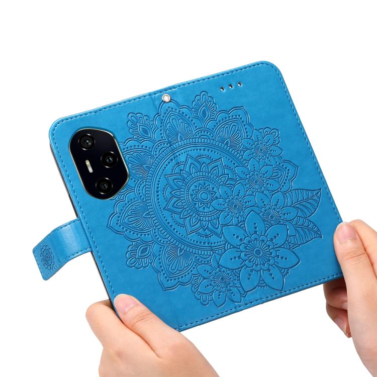 Funda de Cuero con Relieve Flores Siete Pétalos para Honor 300 Pro (Azul)