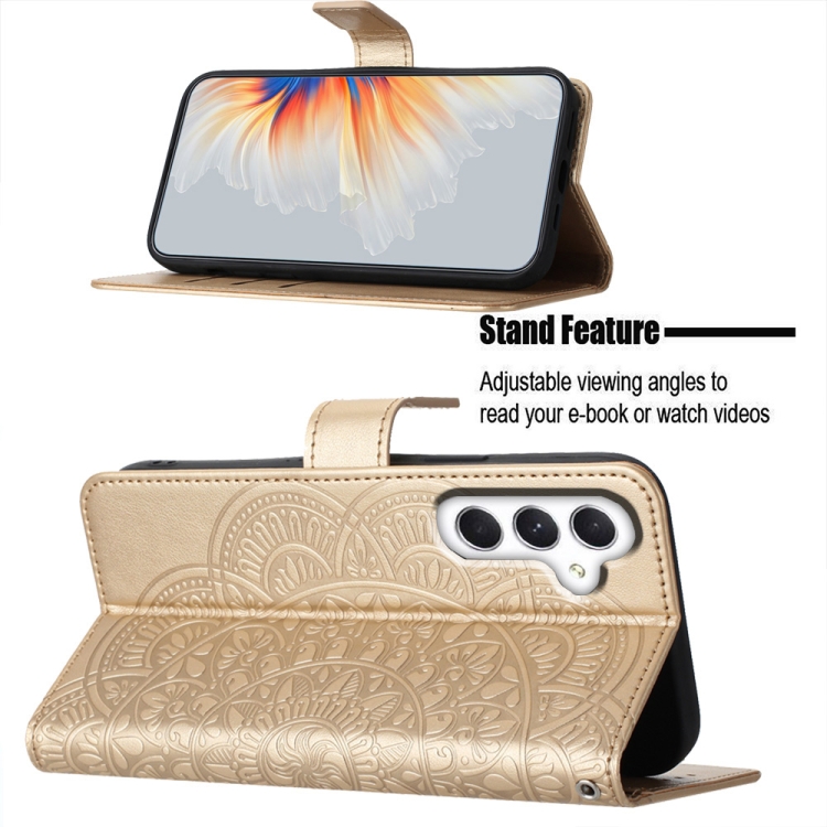 Funda Cuero Samsung Galaxy A56 5G Relieve Flores (Dorada)