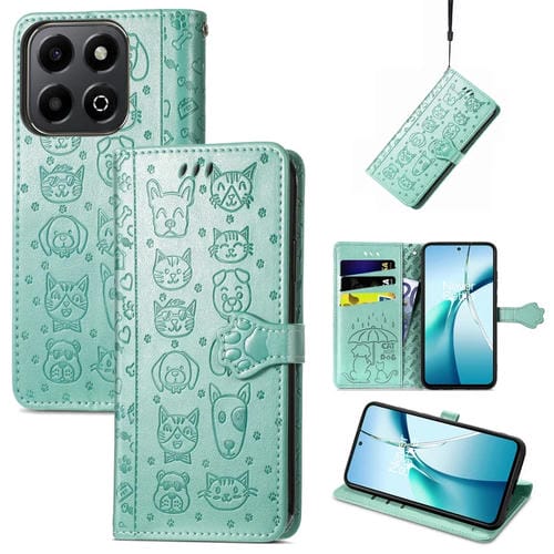 Funda de Cuero con Relieve de Gato y Perro para Honor 200 (Verde)