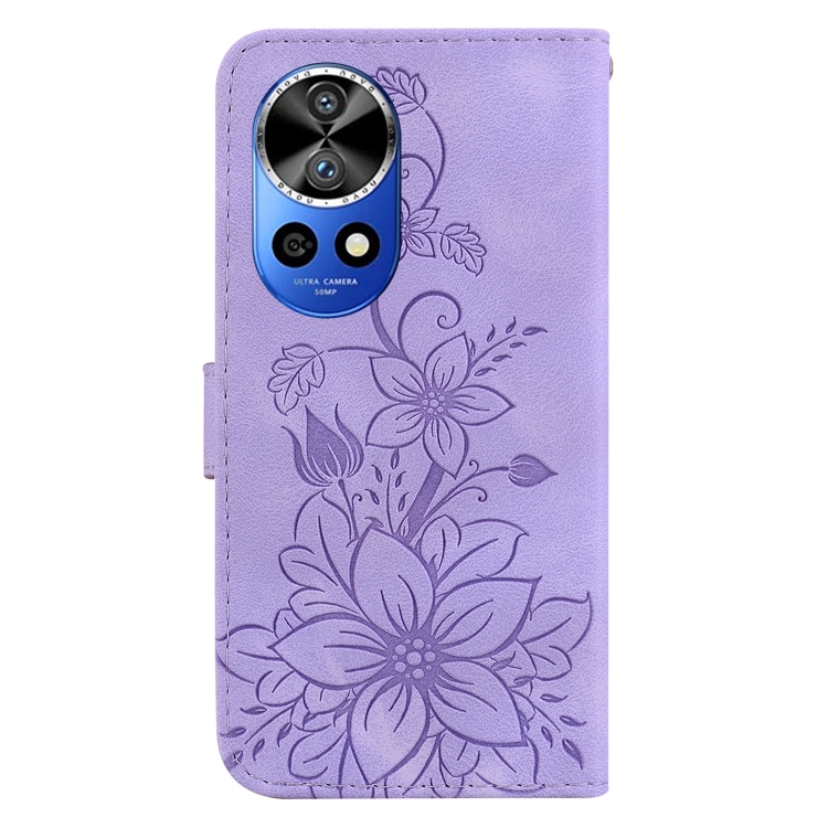 - 1x Funda de Cuero con Relieve de Lirio para Huawei Nova 12 Pro (Morado)