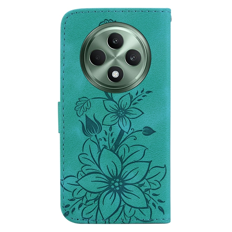 Funda de Cuero con Relieve de Lirio para Oppo Reno12 F 5G (Verde)