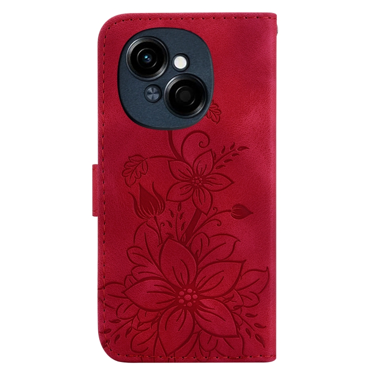 Funda de Cuero con Relieve de Lirio para Tecno Spark Go 1/Pop 9 Pro (Roja)