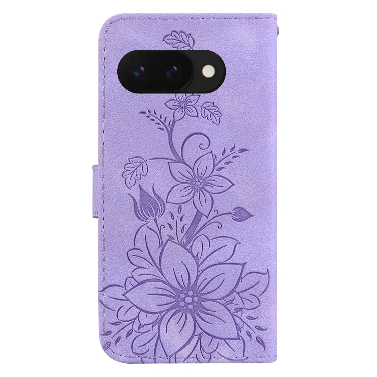 Funda de Cuero con Relieve de Lirios para Google Pixel 9A (Morado)