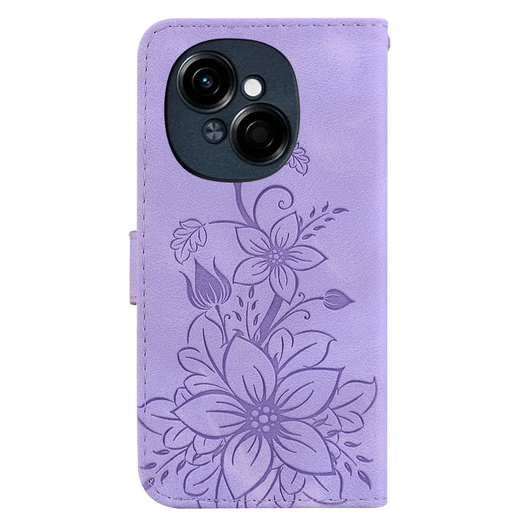 Funda de Cuero con Relieve de Lirios para Tecno Spark Go 1 y Pop 9 Pro (Morado)