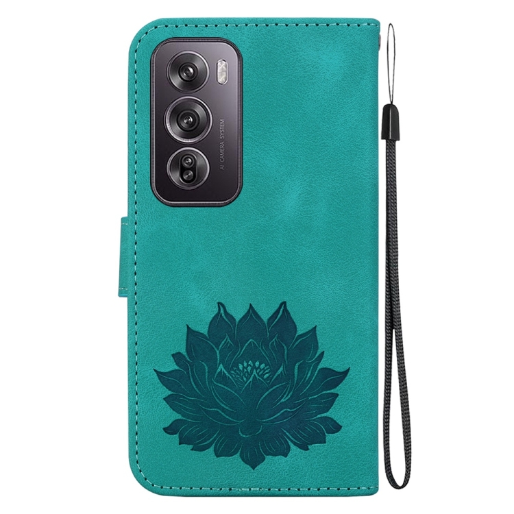 Funda de Cuero con Relieve de Loto para Oppo Reno12 Pro 5G Global (Verde)