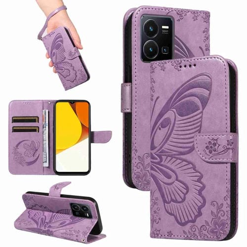 Funda de Cuero con Relieve de Mariposa En Forma de Cola de Golondrina para Vivo Y35/Y22S/Y22 (Morado)