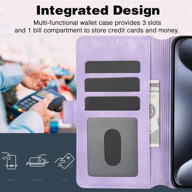 Funda de Cuero iPhone 12/12 Pro Relieve Mariposa y Flor Amor Ensueño (Morado)