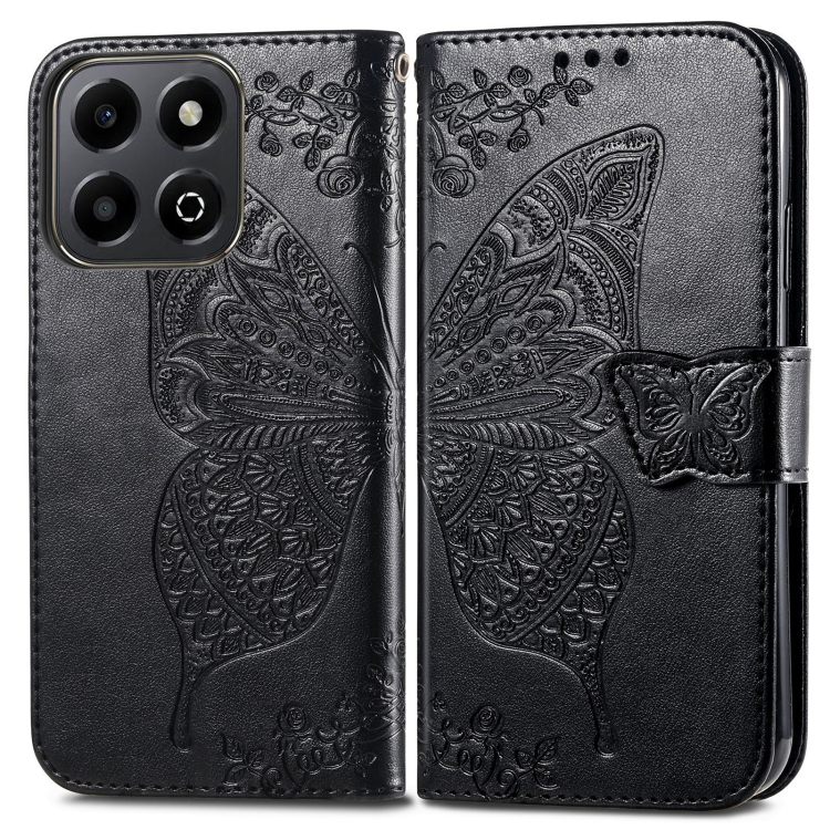 Funda de Cuero con Relieve Mariposa y Flor para Honor 200 (Negro)