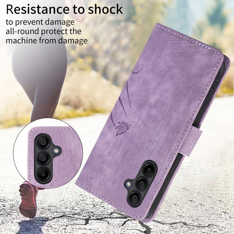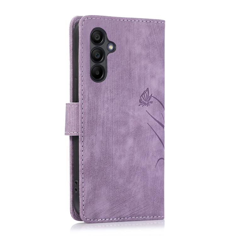 Funda de Cuero Samsung Galaxy A16 5G Relieve Mariposa y Orquídea (Morado)