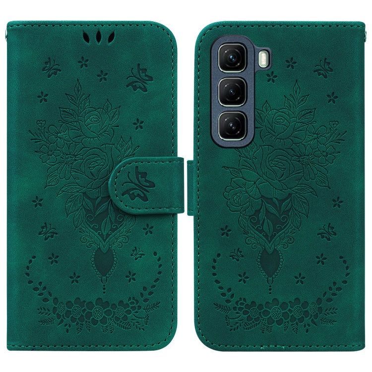 Funda de Cuero con Relieve Mariposa y Rosa para Infinix Hot 50 4G (Verde)