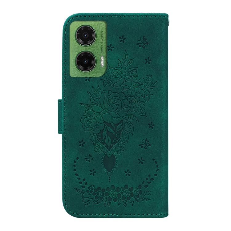 Funda de Cuero Motorola Moto G35 con Relieve Mariposa y Rosa (Verde)