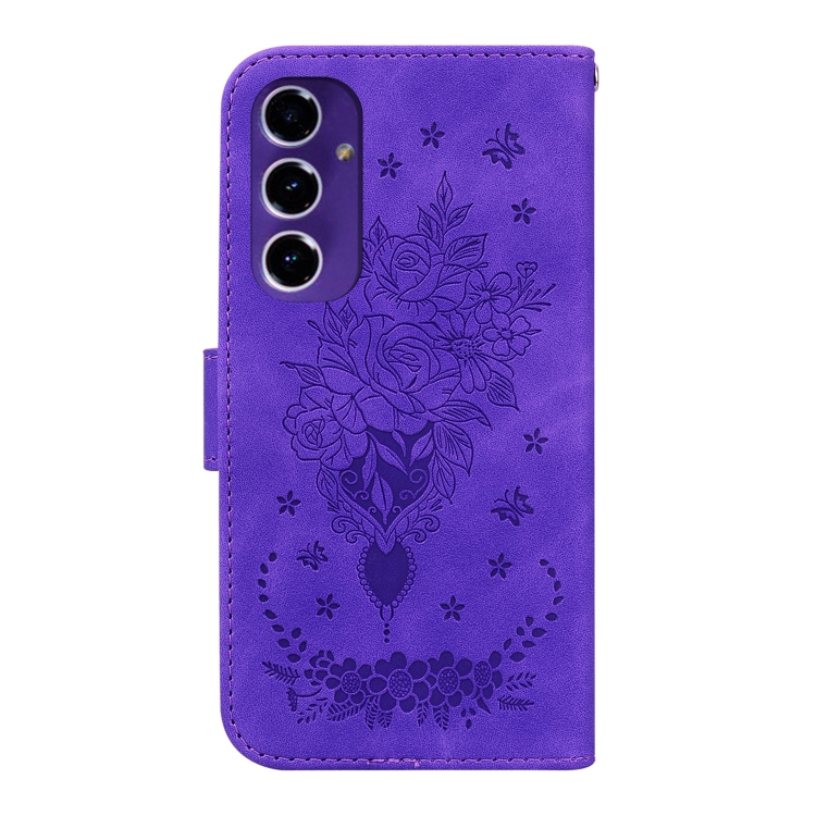 Funda Cuero Samsung Galaxy A16 5G Relieve Mariposa y Rosa (Morado)