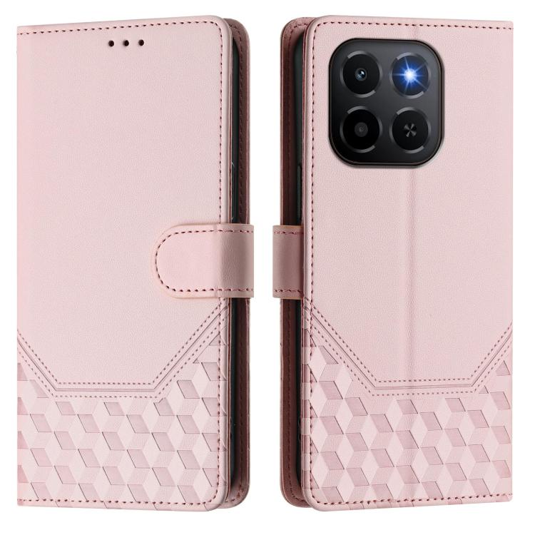 Funda de cuero con relieve de panal RFID para Honor X6c 4G (rosa)