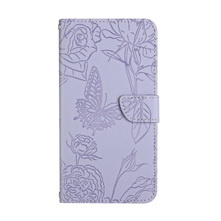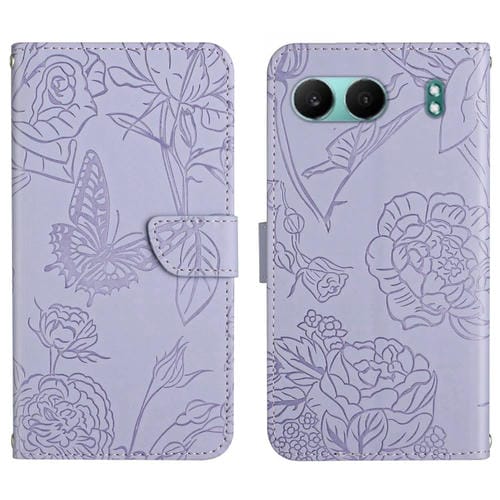 Funda de Cuero con Relieve de Peonía y Mariposa para OnePlus Nord 4 5G (Morado)