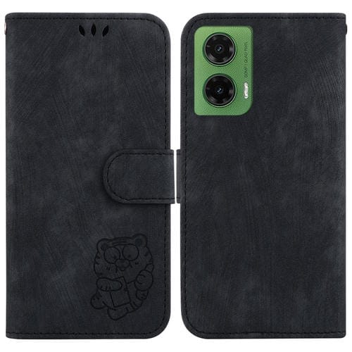 Funda de Cuero con Relieve de Tigre para Motorola Moto G35 (Negra)