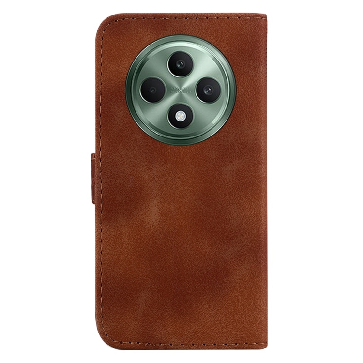 Funda de Cuero con Relieve En Forma de Siete para Oppo Reno12 F 5G (Marrón)