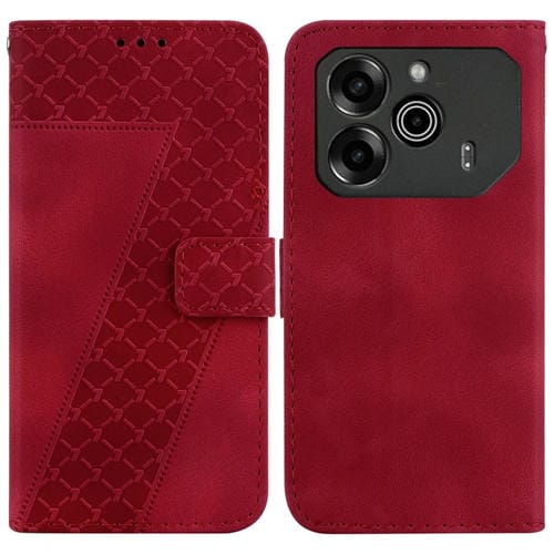 Funda de Cuero con Relieve en Forma de Siete para Tecno Pova 6 5G y 6 Pro 5G (Rojo)