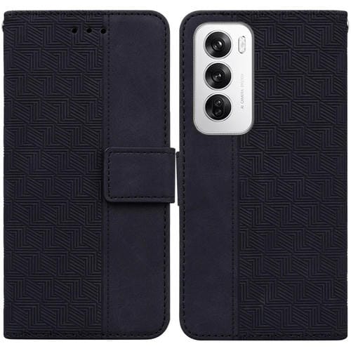 Funda de Cuero con Relieve Geométrico Global para Oppo Reno12 5G (Negra)