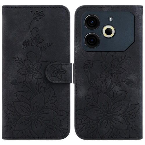 Funda de Cuero con Relieve Lily para Teléfono Tecno Pova 6 Neo (Negra)