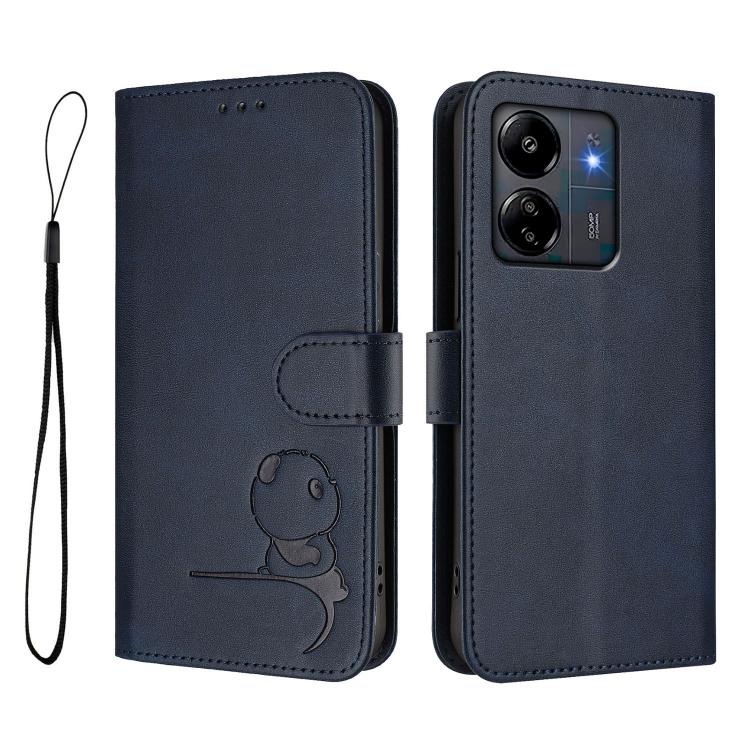 Funda de cuero con relieve RFID y cordón para Redmi 13C 4G / 5G / Poco C65 (azul)