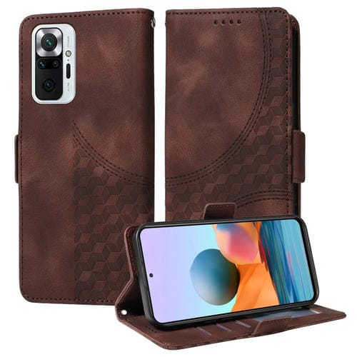 Funda de Cuero con Relieve Romboide y Estrellas para Redmi Note 10 Pro 4G (Marrón)