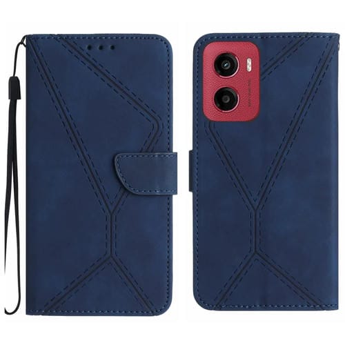 Funda de Cuero con Relieve y Costuras para Motorola Moto G05 (Azul)